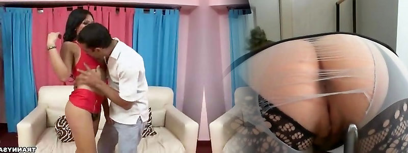 Thai ladyboy in fishnet tights teasing