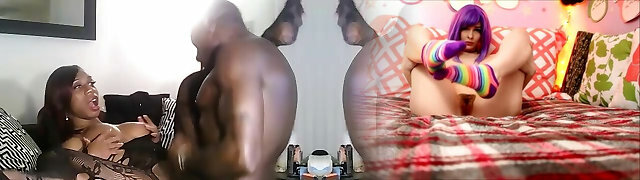 ébano transgirl natalia coxx es penetrada por un agujero en el culo por un chica travieso