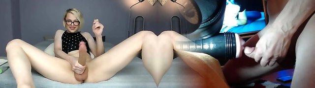 t-modelo rubia caliente con gran polla está tirando duro como una roca