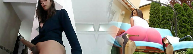une femme trans avec une énorme bite fait une branlette à son voisin pendant qu'il caresse sa tige d'amour et suce ses gros seins de fille trans