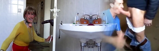 Incroyable blonde se faire défoncer par transexuelle et guy