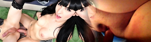 Transgirl Rock-hard在她的卧室里犁了一个原始的Cockslut