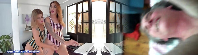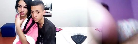 毛茸茸的teenie porked通过一个人妖在现场网络摄像头展示