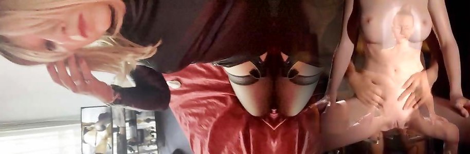 Alexis Livingston cool ninja bathrobe rouge joue avec un plaything en pensant ses exploit avec un client moustachu