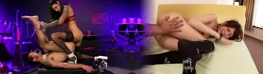 Inked she-male fuckslut handballing mans backside crevasse using her foot