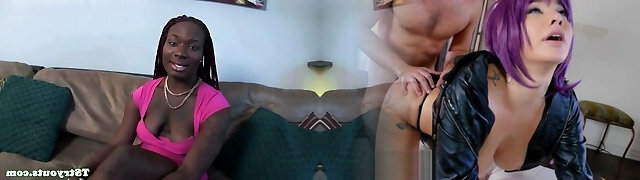 Ebony shemale fucks guy no condom