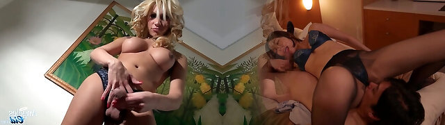 ट्रांस बड़े स्तन, जैक और स्ट्रोक आदमी मांस जब तक वह सह नालियों