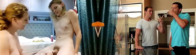 блондинистый транссексуал трахает рыжеволосую шлюшку с натуральными сиськами