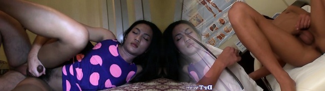 短头发泰国变性人抽搐掉,同时获得的肛门的性交